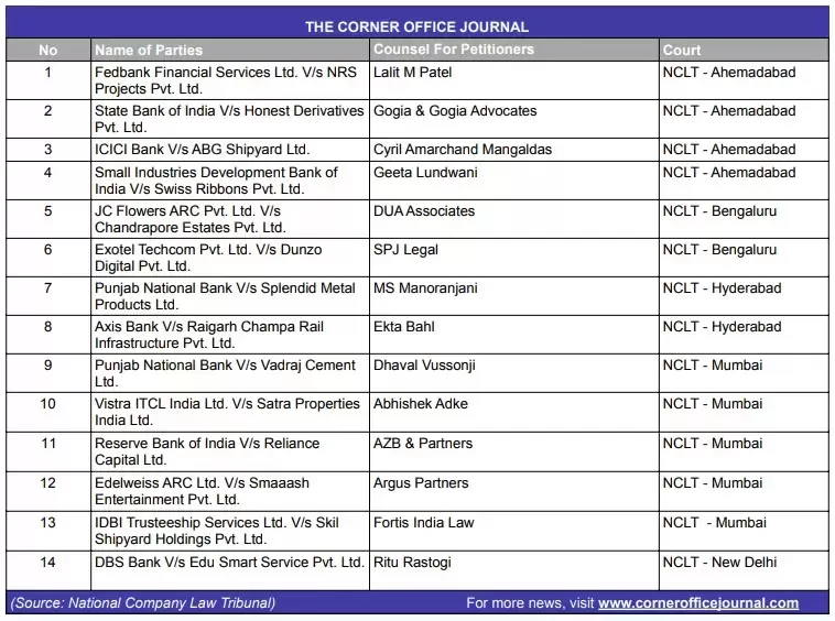 NCLT to hear cases related to Dunzo Digital, Reliance Capital, Swiss Ribbons, Smaaash Entertainment, ABG Shipyard and Edu Smart Service