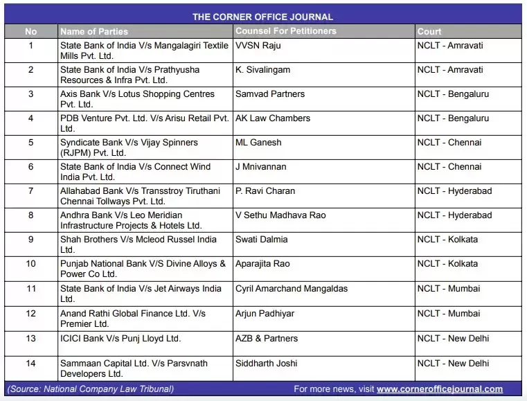 NCLT to hear cases related to Mcleod Russel India, Punj Lloyd, Arisu Retail, Parsvnath Developers and Jet Airways