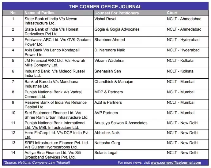 NCLT to hear cases related to Mcleod Russel, Reliance Capital, Mandhana Industries, Vadraj Cement, Siti Broadband Services and GVK Gautami Power