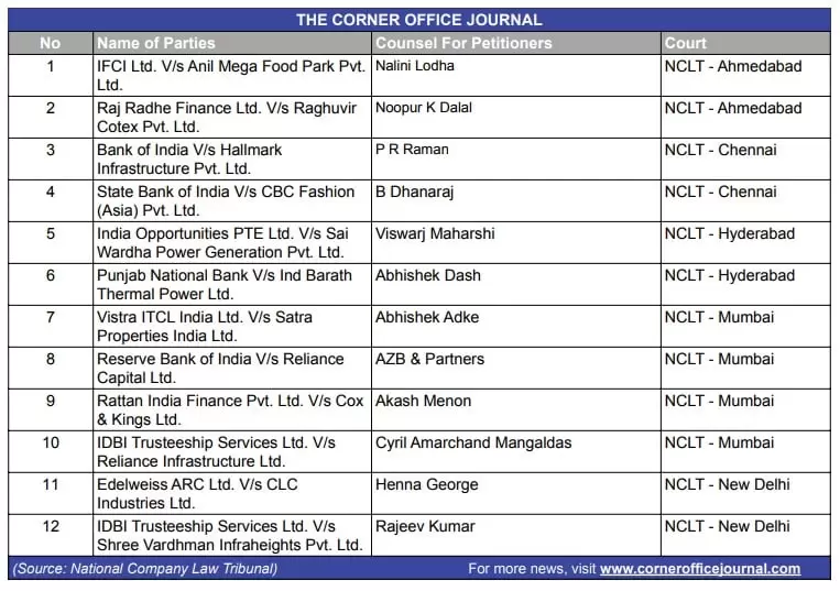 NCLT to hear cases related to Reliance Capital, Cox & Kings, Reliance Infrastructure and Sai Wardha Power Generation