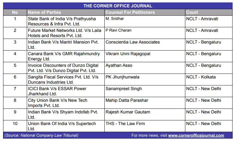 NCLT to hear cases related to Supertech, Mantri Mansion, Dunzo Digital and GMR Rajahmundry Energy