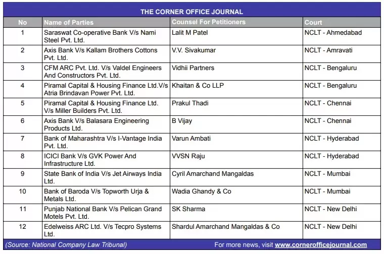 NCLT to hear cases related to Jet Airways, Tecpro Systems, GVK Power & Infrastructure, Nami Steel and Atria Brindavan Power