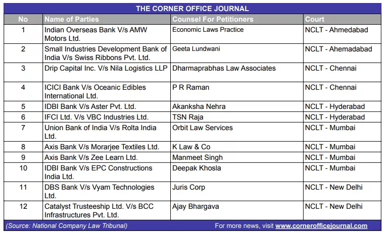 NCLT to hear cases related to Rolta India, Morarjee Textiles, Zee Learn and AMW Motors