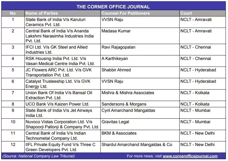 NCLT to hear cases related to Shapoorji Pallonji & Company, Vasan Medical Centre India, GVK Energy, Karuturi Ceramics and Jet Airways