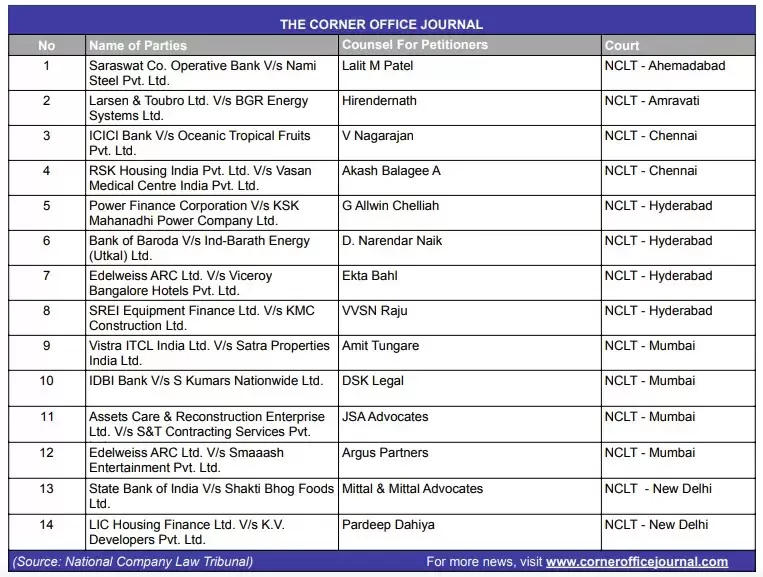 NCLT to hear cases related to Smaaash Entertainment, KMC Construction, Shakti Bhog Foods and Satra Properties India