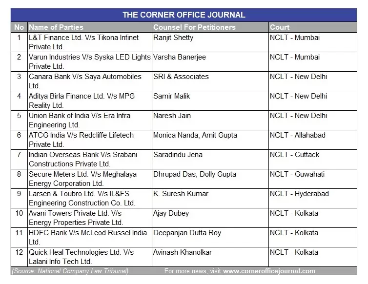 NCLT to hear cases related to Syska, Era Infra Engineering, Meghalaya Energy, McLeod Russel and IL&FS Engineering Construction