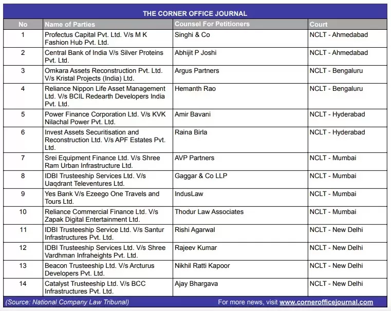 NCLT to hear cases related to Zapak Digital Entertainment, Ezeego One Travel & Tours, Silver Proteins, KVK Nilachal Power and Uaqdrant Televentures