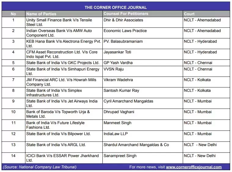 NCLT to hear cases related to GKC Projects, Simhapuri Energy, Future Lifestyle Fashions, AMW Auto Component and Jet Airways