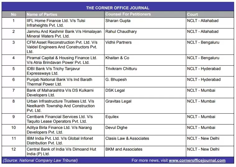 NCLT to hear cases related to Himalayan Mineral Waters, Narang Developers, Taquito Lease Operators and Trichy Tanjavur Expressways