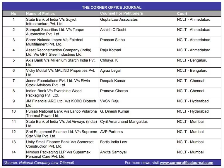 NCLT to hear cases related to Jet Airways, Kobo Biotech, Torque Automotive, Malind Properties and Lanco Vidarbha Thermal Power