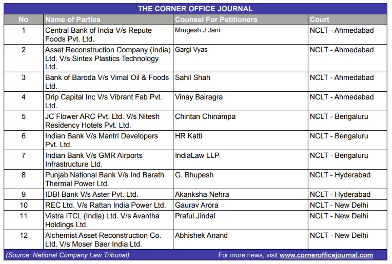 NCLT to hear cases related to Nitesh Residency, Aster, Avantha Holdings, GMR Airports and Mantri Developers