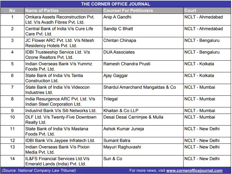NCLT to hear cases related to Siti Networks, Videocon Industries, Jaypee Infratech, Pixion Media and Cure Life Care