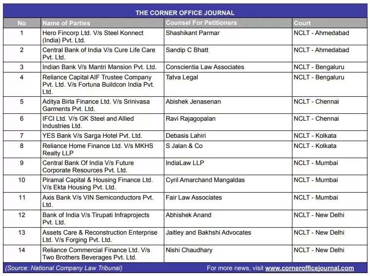 NCLT to hear cases related to Tirupati Infraprojects, Cure Life Care, Sarga Hotel, Future Corporate Resources, Mantri Mansion and Ekta Housing