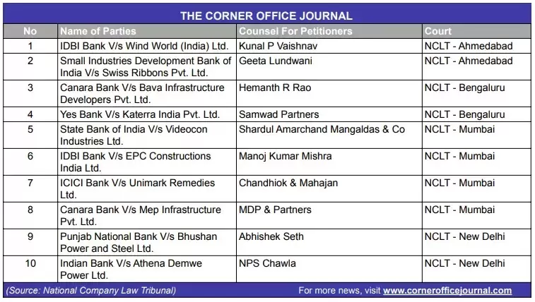 NCLT to hear cases related to Videocon Industries, MEP Infrastructure, Swiss Ribbons, Bhushan Power & Steel and Unimark Remedies