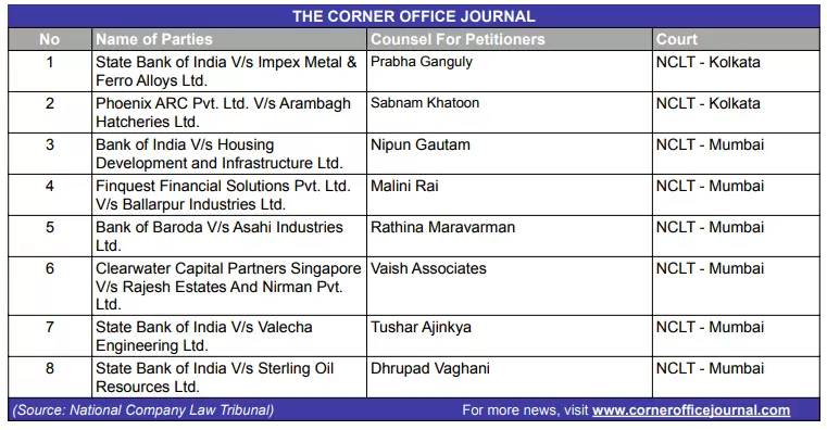 NCLT to hear cases related to Ballarpur Industries, Valecha Engineering, Asahi Industries and Arambagh Hatcheries