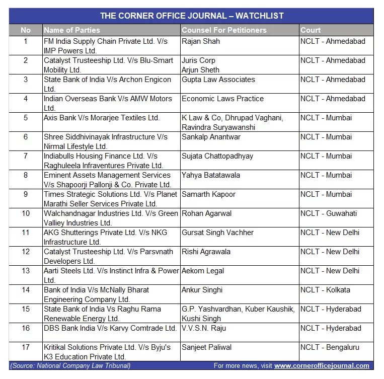NCLT to hear cases related to Blu-Smart Mobility, Shapoorji Pallonji & Co, Nirmal Lifestyle, McNally Bharat Engineering and Byju's K3 Education