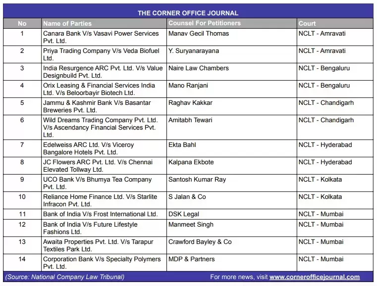 NCLT to hear cases related to Frost International, Beloorbayir Biotech, Specialty Polymers, Future Lifestyle Fashions and Viceroy Bangalore Hotels