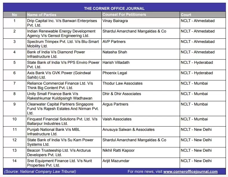 NCLT to hear cases related to Gensol Engineering, Blu-Smart Mobility, Su Kam Power Systems, Diamond Power Infrastructure and Ballarpur Industries