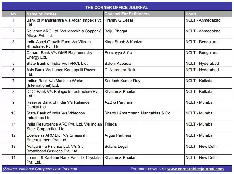 NCLT to hear cases related to Reliance Capital, Smaaash Entertainment, Videocon Industries, Lanco Kondapalli Power and Siti Broadband Services
