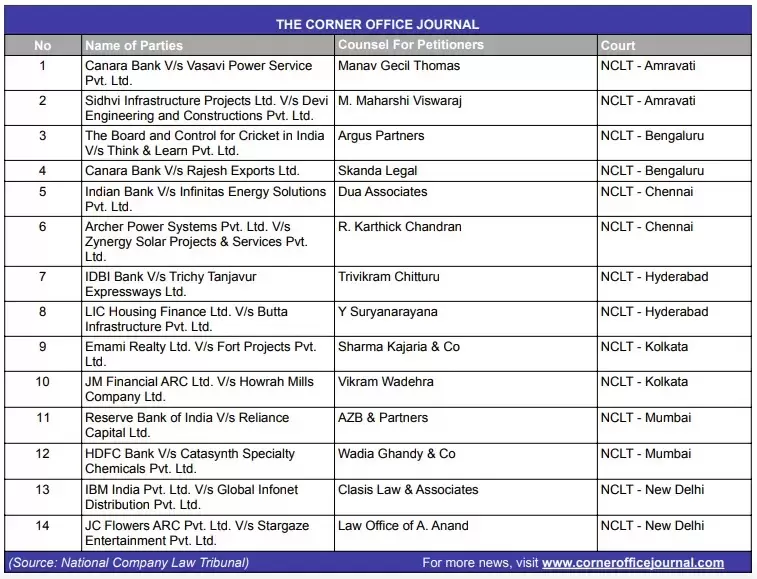 NCLT to hear cases related to Reliance Capital, Stargaze Entertainment, Think & Learn, Rajesh Exports and Butta Infrastructure
