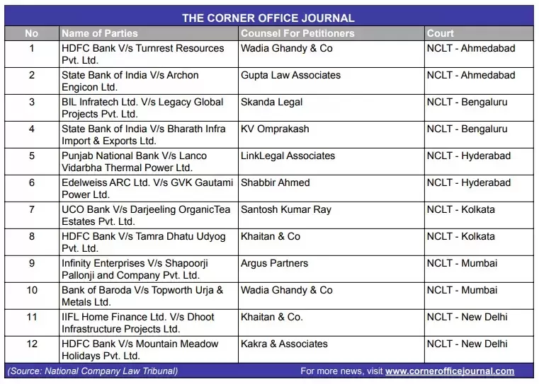 NCLT to hear cases related to Shapoorji Pallonji & Co, Turnrest Resources, GVK Gautami Power, Archon Engicon and Lanco Vidarbha Thermal Power