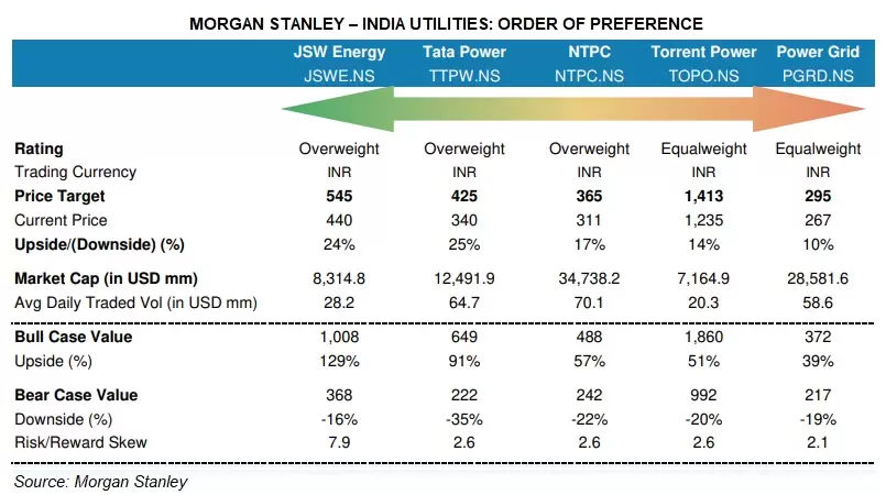 Morgan Stanley said JSW Energy has among the smartest and most experienced management teams in the Indian utility space, with a strong execution track record on growth and a reasonable balance sheet.