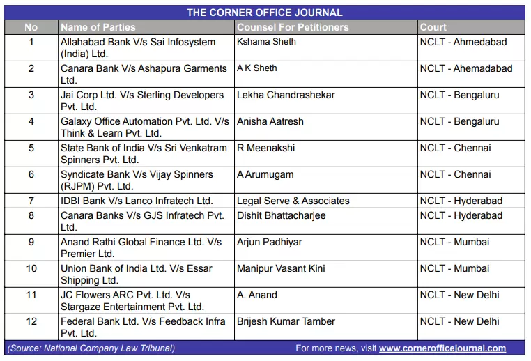 NCLT to hear cases related to Premier, Essar Shipping, GJS Infratech and Think & Learn