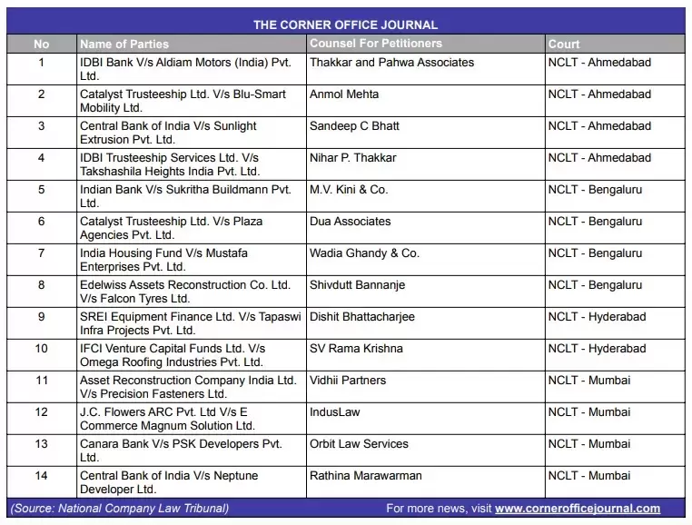 NCLT to hear cases related to Blu-Smart Mobility, Precision Fasteners, Neptune Developer, Falcon Tyres and Mustafa Enterprises