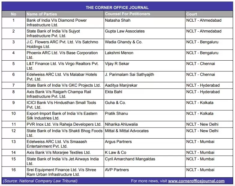 NCLT to hear cases related to Morarjee Textiles, Smaaash Entertainment, GKC Projects, Jet Airways and Shree Ram Urban Infrastructure