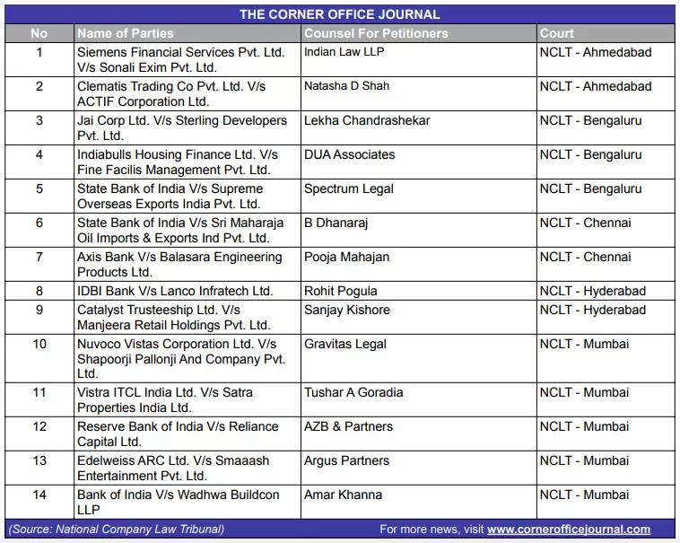 NCLT to hear cases related to Reliance Capital, Shapoorji Pallonji, Lanco Infratech, Sterling Developers and Satra Properties