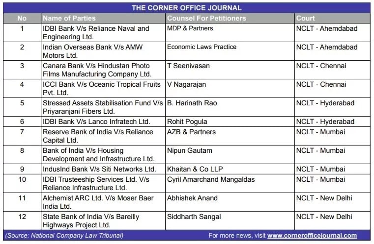 NCLT to hear cases related to Reliance Capital, Siti Networks, Lanco Infratech, Moser Baer India and Reliance Naval & Engineering