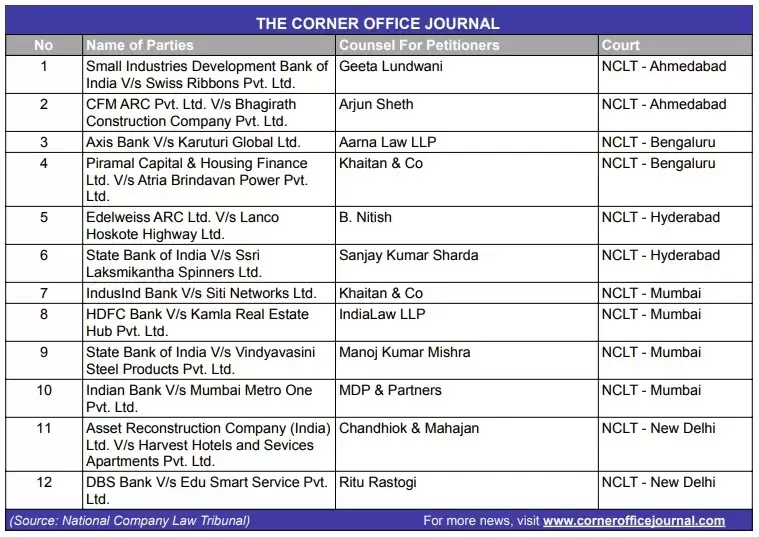 NCLT to hear cases related to Siti Networks, Edu Smart Service, Karuturi Global and Mumbai Metro One