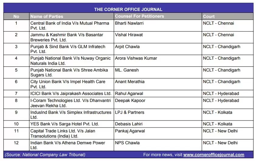 NCLT to hear cases related to Jaiprakash Associates, Simplex Infrastructures, Sarga Hotel and Nuway Organic Naturals