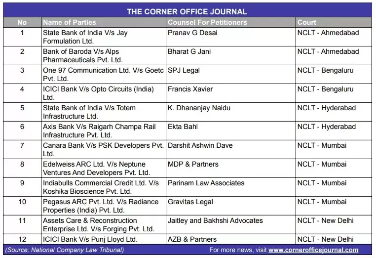 NCLT to hear cases related to PSK Developers, Punj Lloyd, Alps Pharmaceuticals, Neptune Ventures & Developers and Opto Circuits (India)