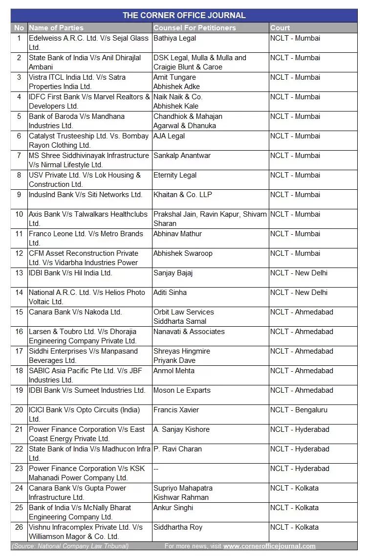 NCLT to hear cases related to Siti Networks, Metro Brands, Opto Circuits (India), Anil Ambani, JBF Industries and Manpasand Beverages