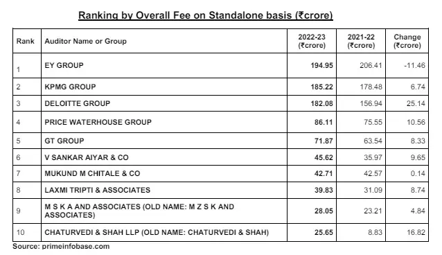 RANKING BY 2022-23 AUDIT FEE (STANDALONE BASIS)